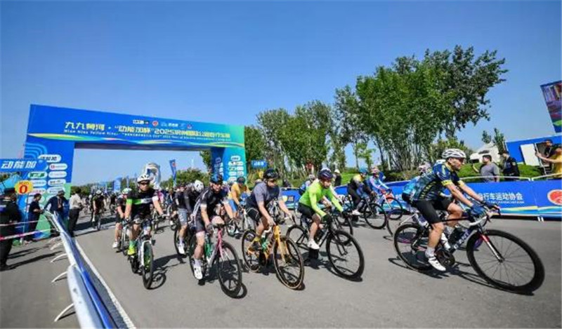 9月9日,九九黄河·2025滨州国际公路自行车赛在黄河三角洲交易中心鸣笛开赛。来自5大洲、29个国家的18支职业车队及600名自行车爱好者齐聚滨州参赛。